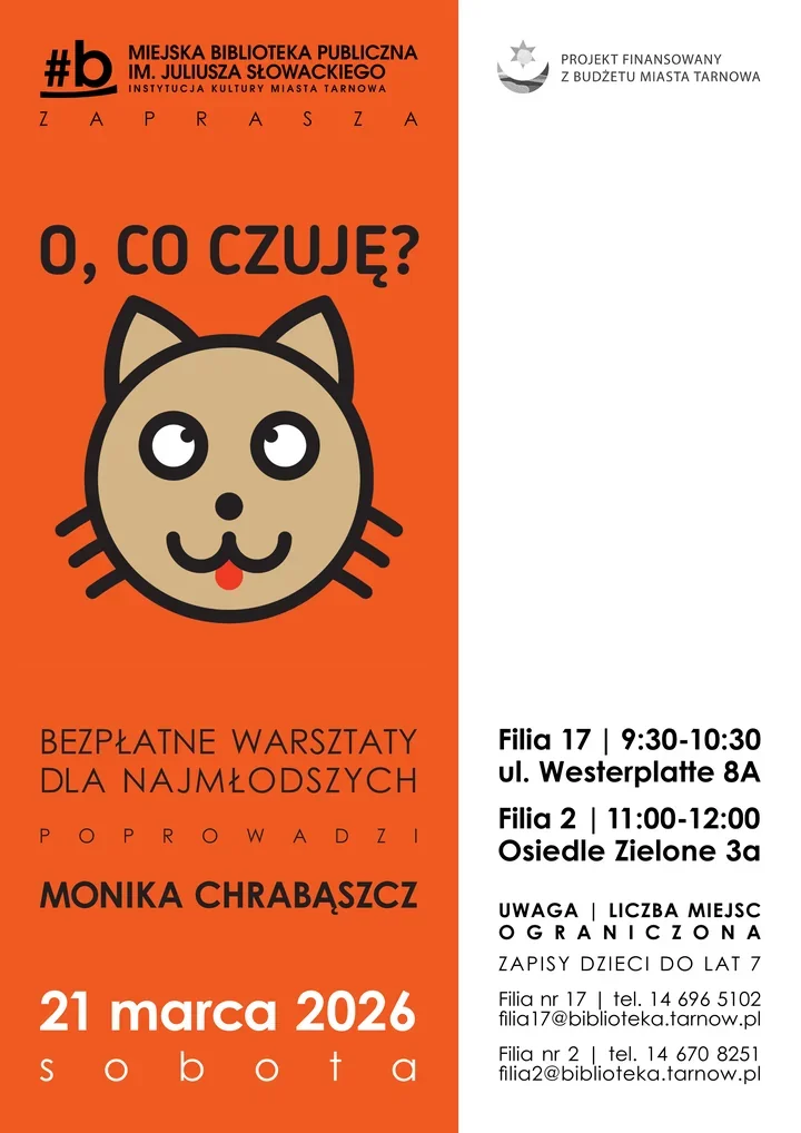 Miejska Biblioteka Publiczna w Tarnowie przygotowała bezpłatne zajęcia skierowane do dzieci do siódmego roku życia. Zajęcia bazują na picture-booku „O, co czuję?” autorstwa Moniki Chrabąszcz i mają prosty cel – oswajanie codziennych stanów emocjonalnych przez zabawę. Dzieci będą poznawać nazwy uczuć, szukać przyczyn ich pojawiania się i uczyć się, że emocje są zmienne i naturalne. Program łączy elementy zabawy ruchowej i pracy plastycznej, więc maluchy wychodzą z aktywnością i pamiątką własnoręcznie wykonanej pracy.