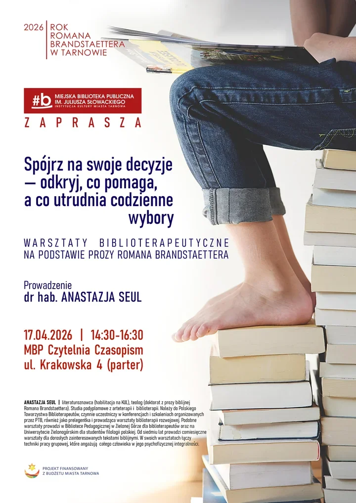 Projekt finansowany jest z budżetu miasta Tarnowa, dzięki czemu wydarzenie trafia do publicznej oferty kulturalnej miasta. Dla osób szukających spotkania, które łączy literaturę z namysłem nad własnymi decyzjami, to jedna z tych propozycji, gdzie książka przestaje być dodatkiem do półki, a staje się punktem wyjścia do rozmowy.