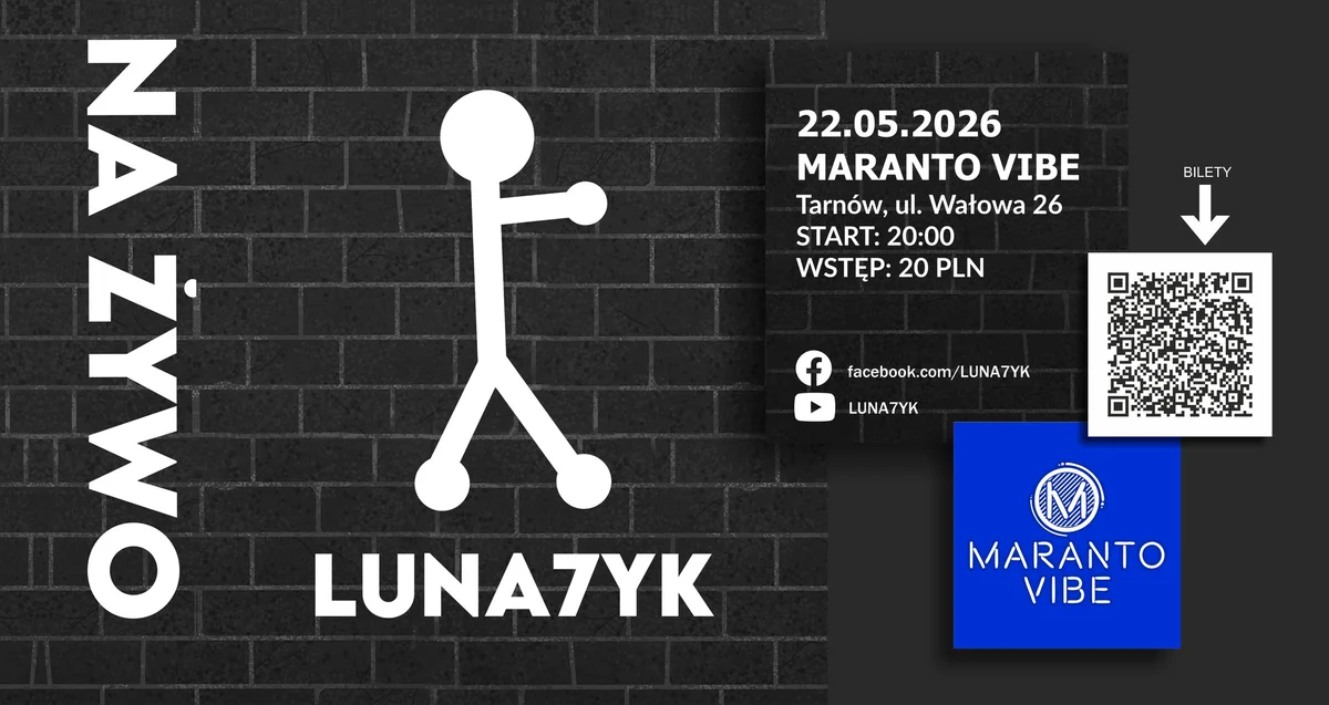 Tarnów szykuje się na wieczór z żywą muzyką i energią, która powinna porwać nie tylko stałych bywalców koncertów LUNATYK pojawi się w Maranto Vibe, a to oznacza dobrą okazję, żeby spędzić piątkowy wieczór przy mocnym brzmieniu i blisko sceny.