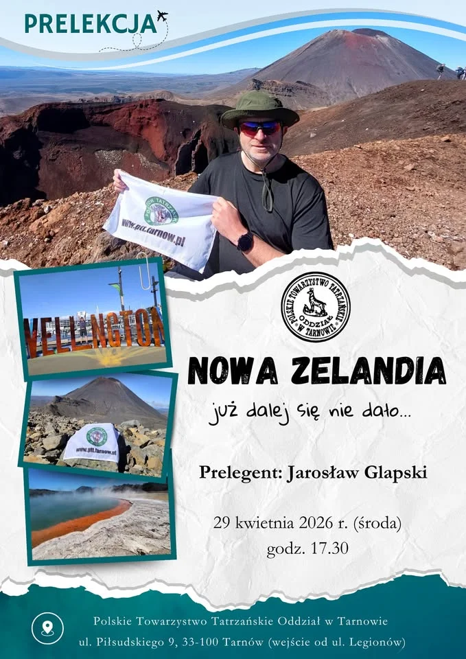 Prelekcja Jarka Glapskiego to okazja, żeby posłuchać o Nowej Zelandii bez pośpiechu i bez turystycznych skrótów Zamiast katalogowych haseł będzie pewnie trochę prawdziwego podróżowania: miejsc, wrażeń, zaskoczeń i tego, co na końcu świata potrafi najbardziej zachwycić.