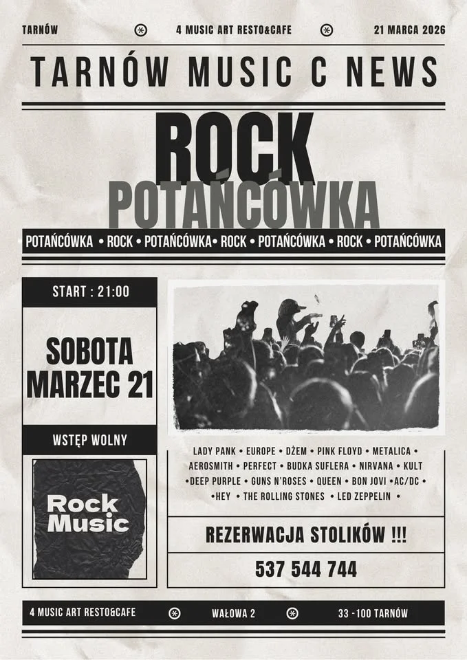 - Miejsce: 4 Music Art Resto & Cafe, Wałowa 2, 33-100 Tarnów